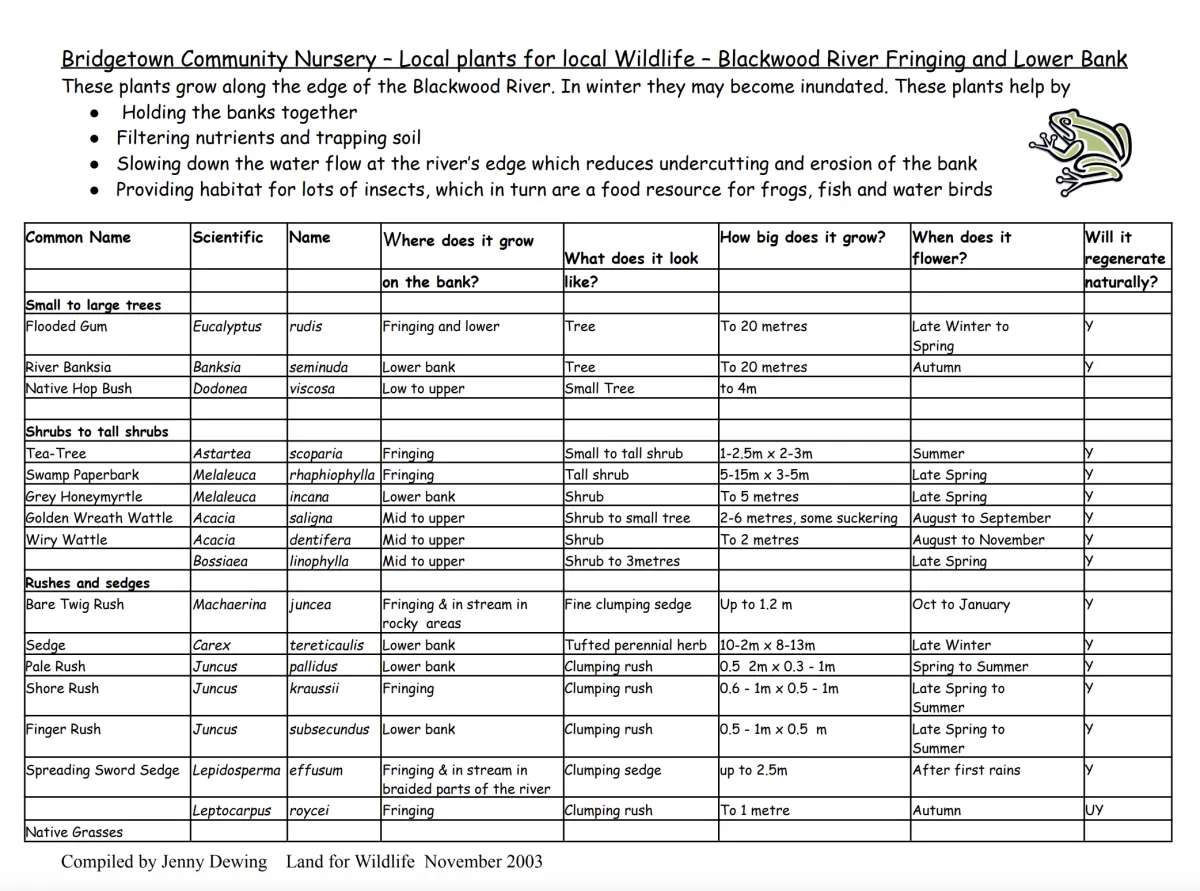 These plants grow along the edge of the Blackwood River. In winter they may become inundated.