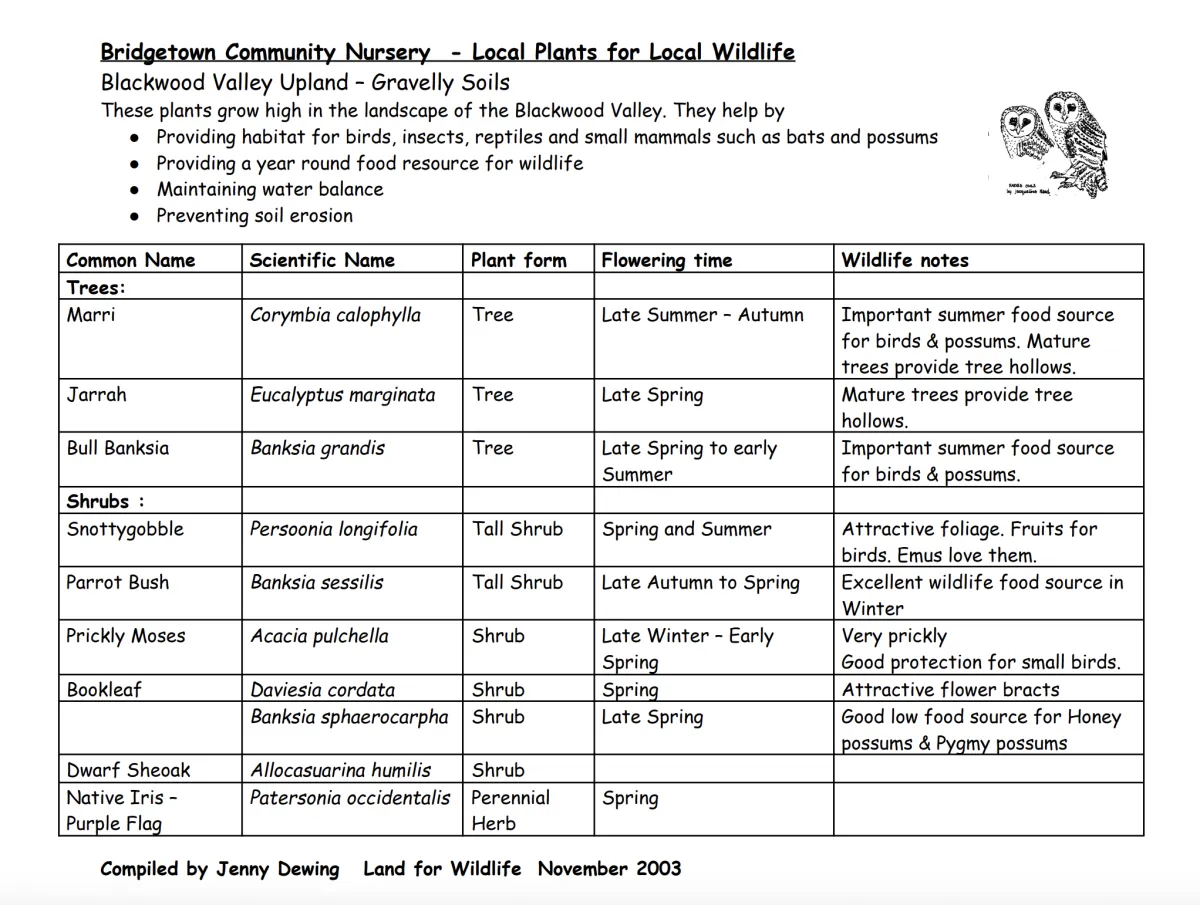 Providing habitat for birds, insects, reptiles and small mammals such as bats and possums