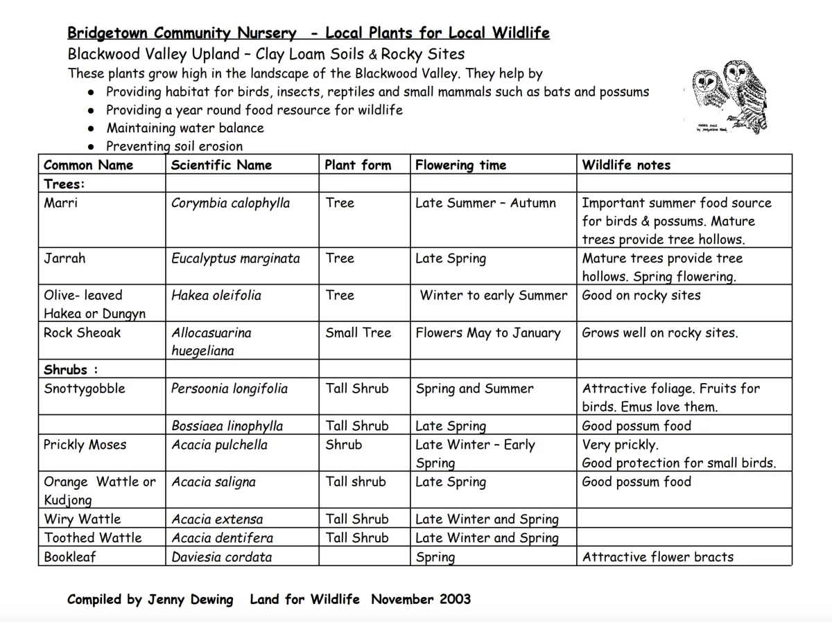 Providing habitat for birds, insects, reptiles and small mammals such as bats and possums